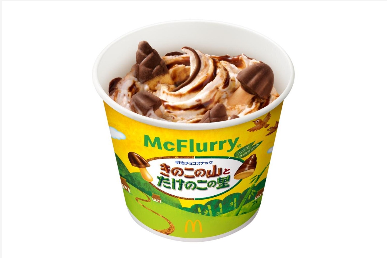 日本麥當勞近日宣布將於1/21推出 同時加入日本知名黨爭零食「香菇山」及「竹筍里」(「きのこの山」と「たけのこの里」)的期間限定口味冰炫風 雖然此舉引發民眾熱議,表示這是同時得罪兩大黨派,但我個人是覺得看起來非常好吃 因為沒打算飛日本,歡迎有吃的人可以提供心得 非常感謝XD