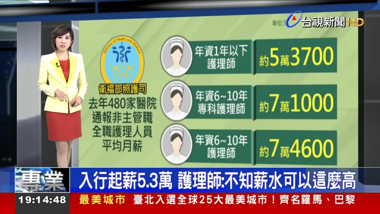 台灣護理師平均年薪155萬!衛福部說年資一年以下的護理師薪水有5萬