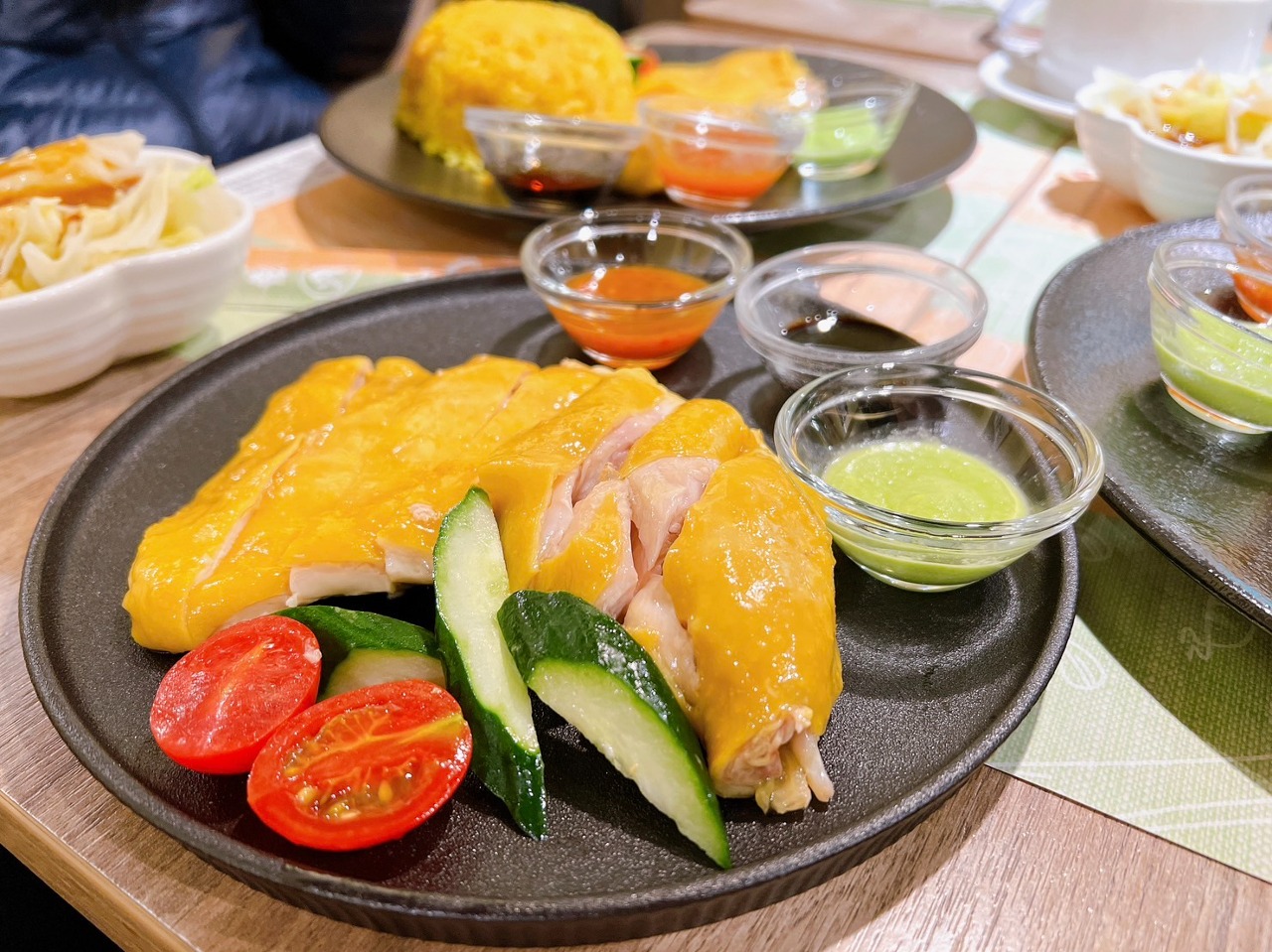 🐔招牌海南雞腿飯$170 附上🥬小黃瓜與三種醬料