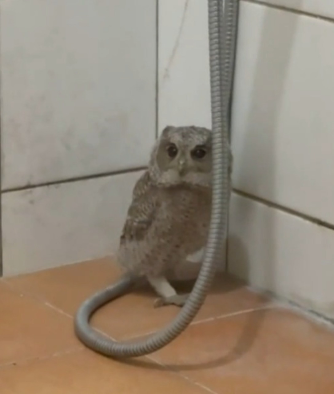 基隆市一位張先生在社群平台PO文,晚上一隻貓頭鷹飛進家裡浴室,上網搜尋後才知道是二級保育類動物領角鴞,趕快聯絡基隆市動保所前來抓捕。動保所也強調,領角鴞因為適應力強,常會出現在人類生活範圍,提醒民眾如果遇到千萬不要動手捕抓或飼養,若不慎傷害到牠, 可能還會有刑事責任。
