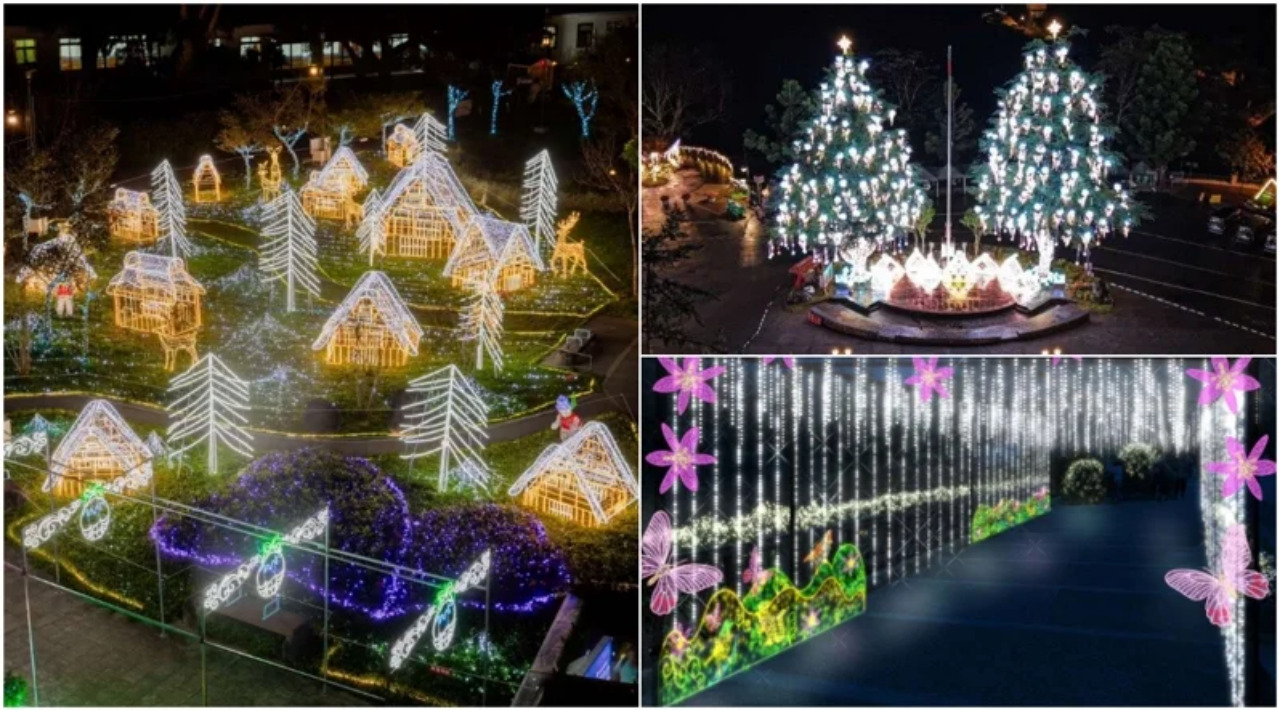 谷關燈區範圍涵蓋谷關公園、谷關遊客中心及東西橫貫公路牌樓,今年亮點之一是以「耶誕泡湯趣」為主題打造的「泡湯喔熊」大型主題燈,濃濃溫泉山城意象讓旅人秒拍。沿著遊客中心外人行道,更規劃「石溪蝶語」燈區,以象徵谷關生態的曙鳳蝶與台灣油點草為設計靈感,彷彿置身溪谷瀑布間,光影流動相當夢幻。