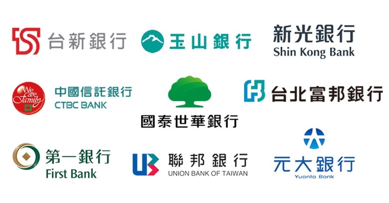 中國信託(中信)、星展銀行、永豐銀行、國泰世華。