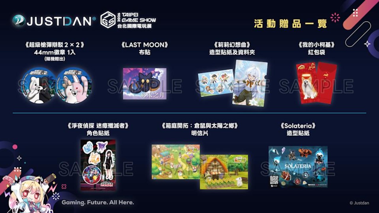 - 玩家於集英社遊戲攤位加入參展遊戲的願望清單,即可獲得特製小卡與收集冊。當天追蹤集英社官方 Facebook 的玩家還可獲得官方特製的側背包。
