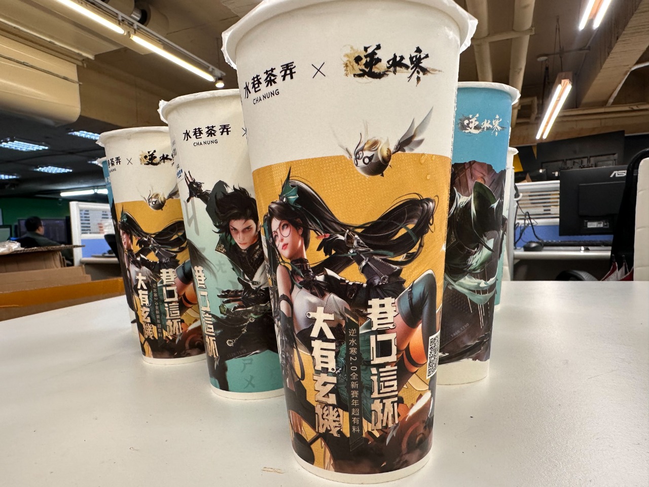 來了我來了!! 之前被水巷茶弄和逆水寒合作的杯子燒到 今天終於有機會讓同事跟我一起買 我們還特別跑去店面採點打卡 整個滿滿的玄機元素 那個齒輪設計真的好讚好喜🥺 既然都到店裡了當然不能錯過優惠和虛寶啦! 終於拿到心心念念的杯子開心回公司 直接開啟大拍特拍模式 真的很好看QQQQ