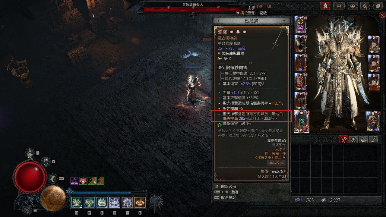 詞綴挑選聖光揮擊等級、生命值、力量、護甲