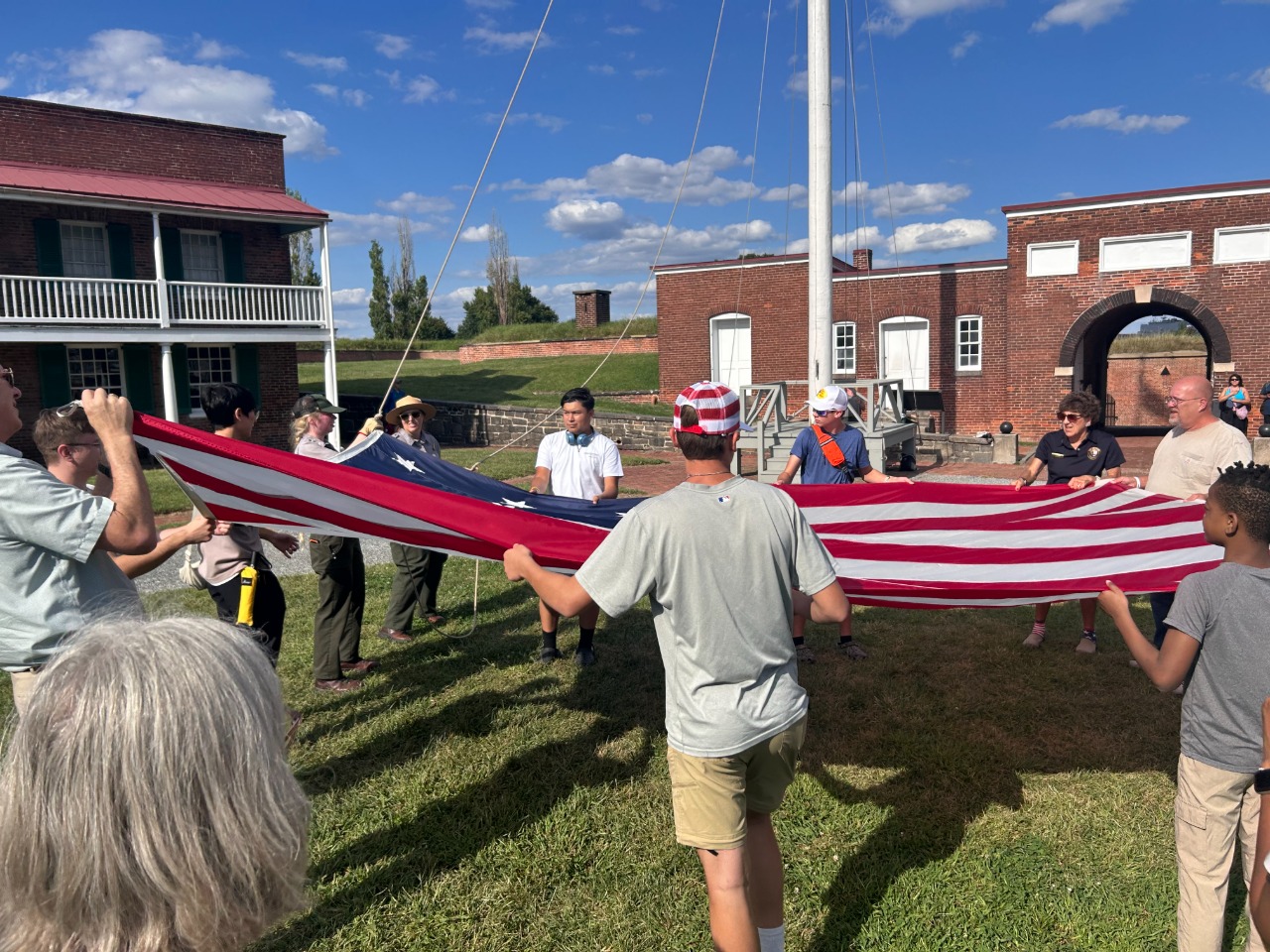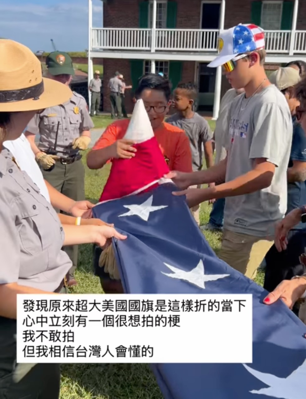 第一次意識到原來要換下這麼大的國旗需要很多人一起在下面接然後一起折 (我也有發影片)