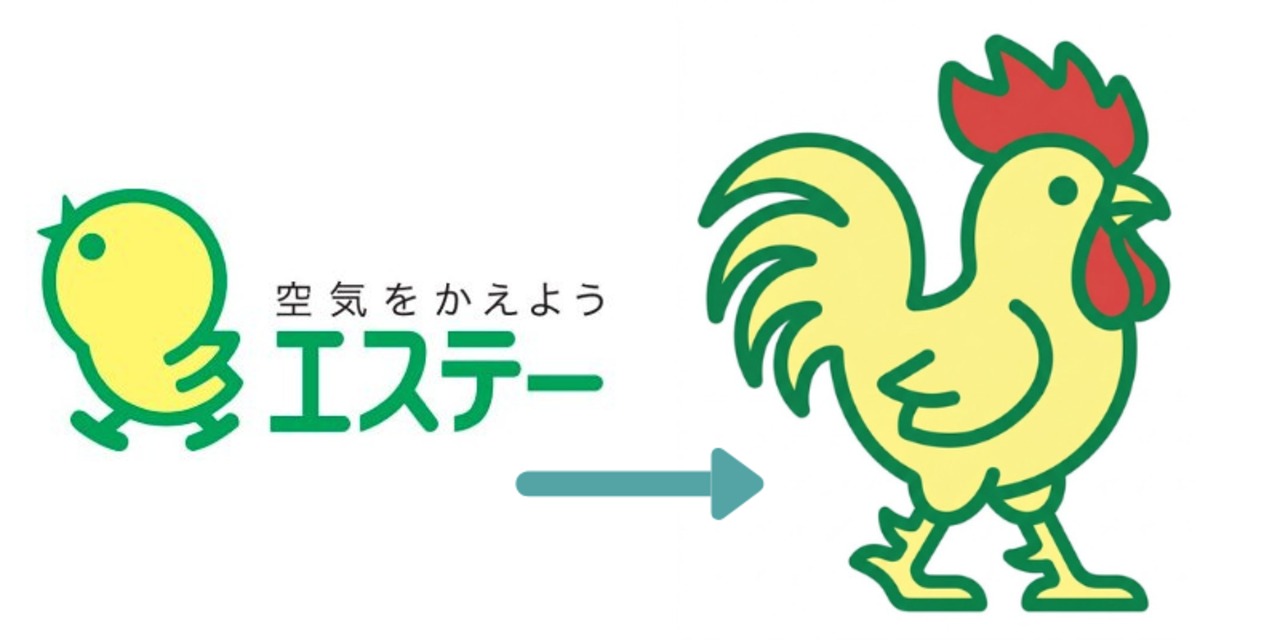 日本芳香劑大廠「エステー」張貼一則【速報】 內容說:エステー企業Logo長成一隻大公雞了!