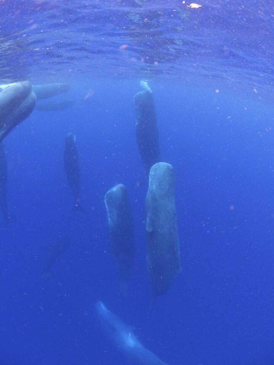 如果您有機會潛入深海,突然看見幾十根長達十幾公尺的巨型石柱直挺挺地懸浮在海中,一動也不動,請不要以為自己發現了外星遺跡或海底神殿!這其實是大自然中最不可思議的奇景之一:抹香鯨正在集體睡覺