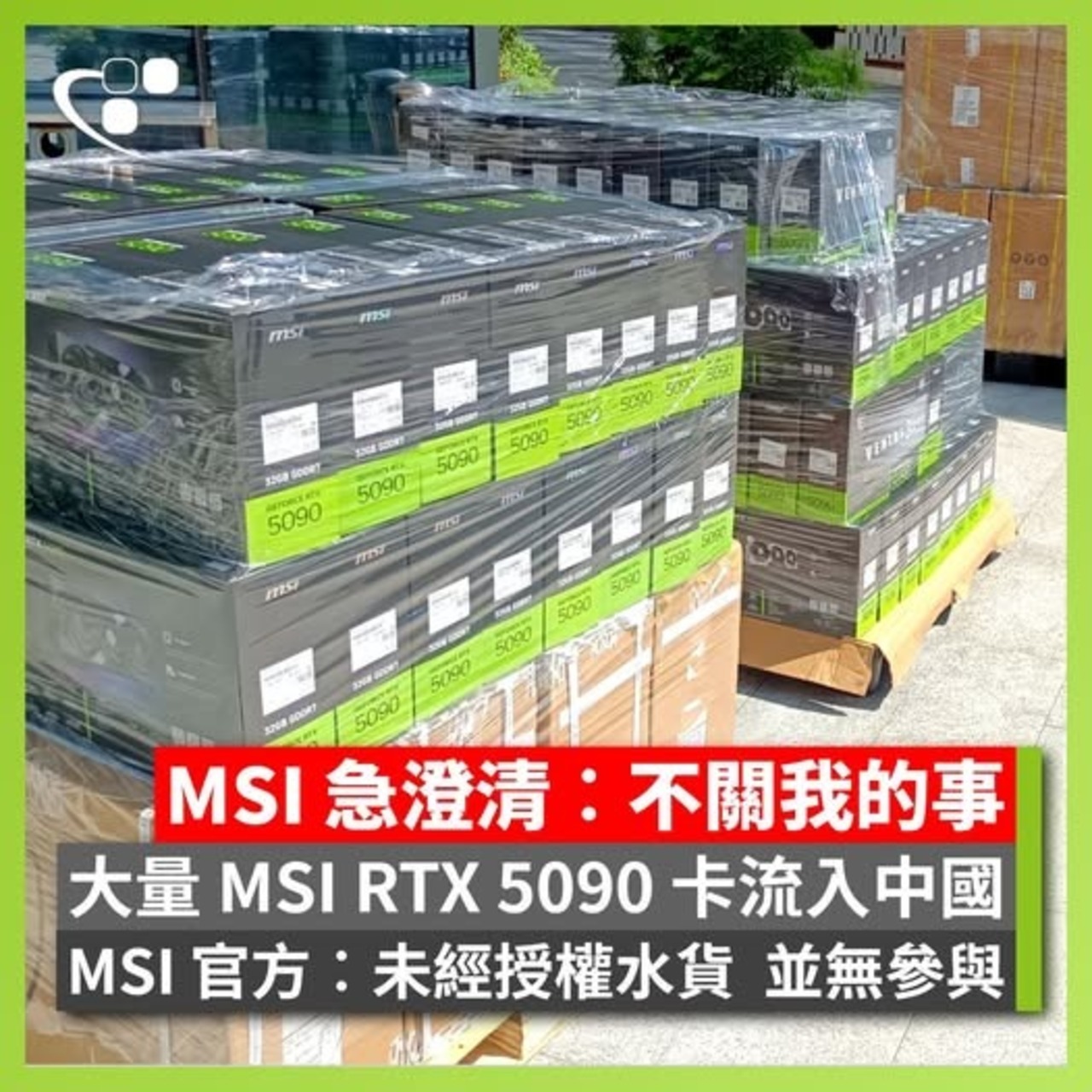 MSI 官方於 15 日回應指,並沒有向中國出貨 GeForce RTX 5090 顯示卡。根據序號追蹤顯示,這些 MSI RTX 5090 來自海外零售市場,被未經授權的經銷商偷運至中國,MSI 與此事無關。