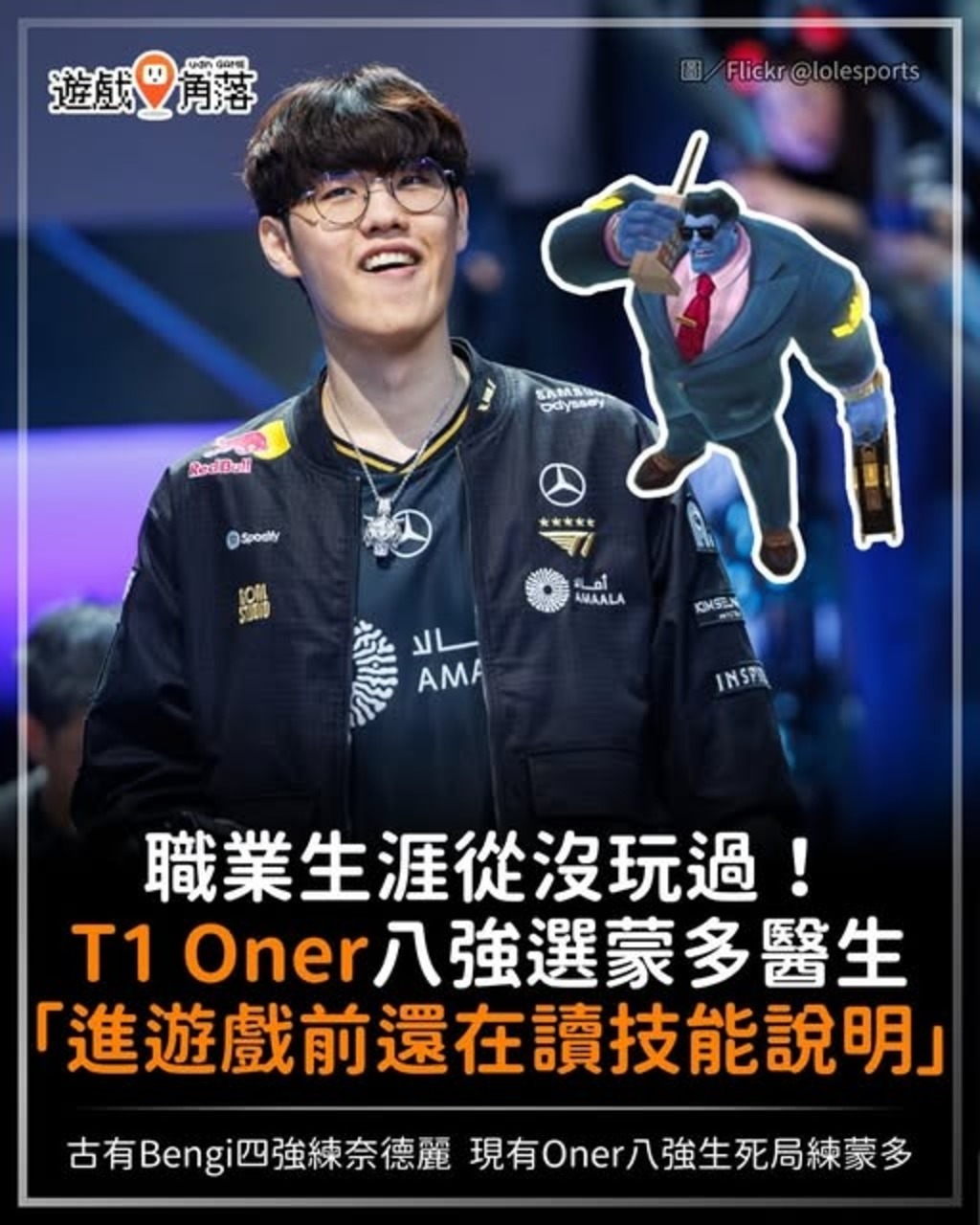 《英雄聯盟》T1 打野 Oner 世界賽八強最後一局拿出職業生涯從沒玩過的蒙多醫生, 賽後他承認「蒙多是為了拆對面組合才硬選」、「進遊戲前還在看技能說明」、「出裝會改進,之後團練會加緊練習」