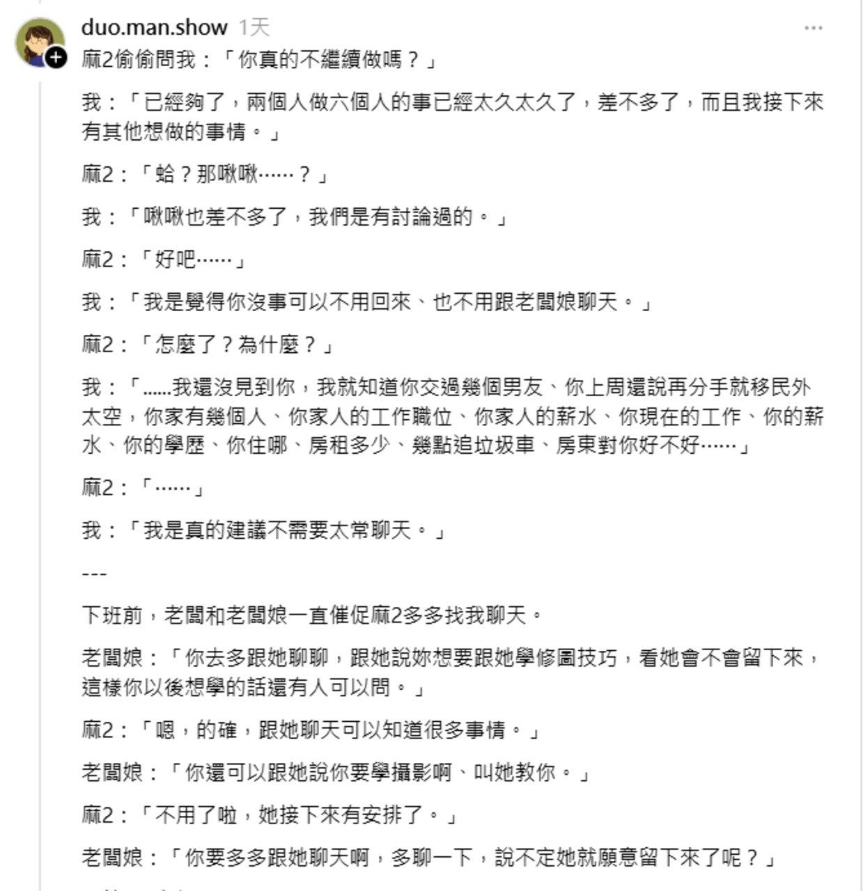 總是要等人離職老闆才會懂員工的好
