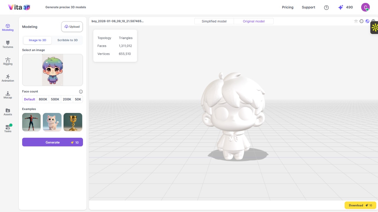 無論是開發遊戲 Mod 擴展內容、製作個人動畫短片,或是作為 3D 列印的基礎原型,Vita3D 都提供了一個高效且低門檻的生成方案。您可以嘗試將手邊的二次元角色圖轉化為立體模型,探索數位資產創作的更多可能性。
