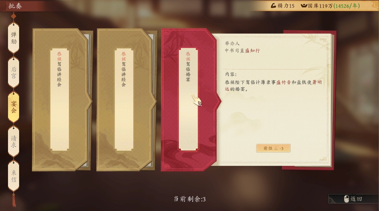 可通過戰爭征伐獲取珍稀道具,並將其貯存於內帑之中。將這些奇珍異寶賞賜給心腹大臣或皇室成員,既能提升其隱藏屬性的成長潛力,亦可直接強化紙面上的數值實力。