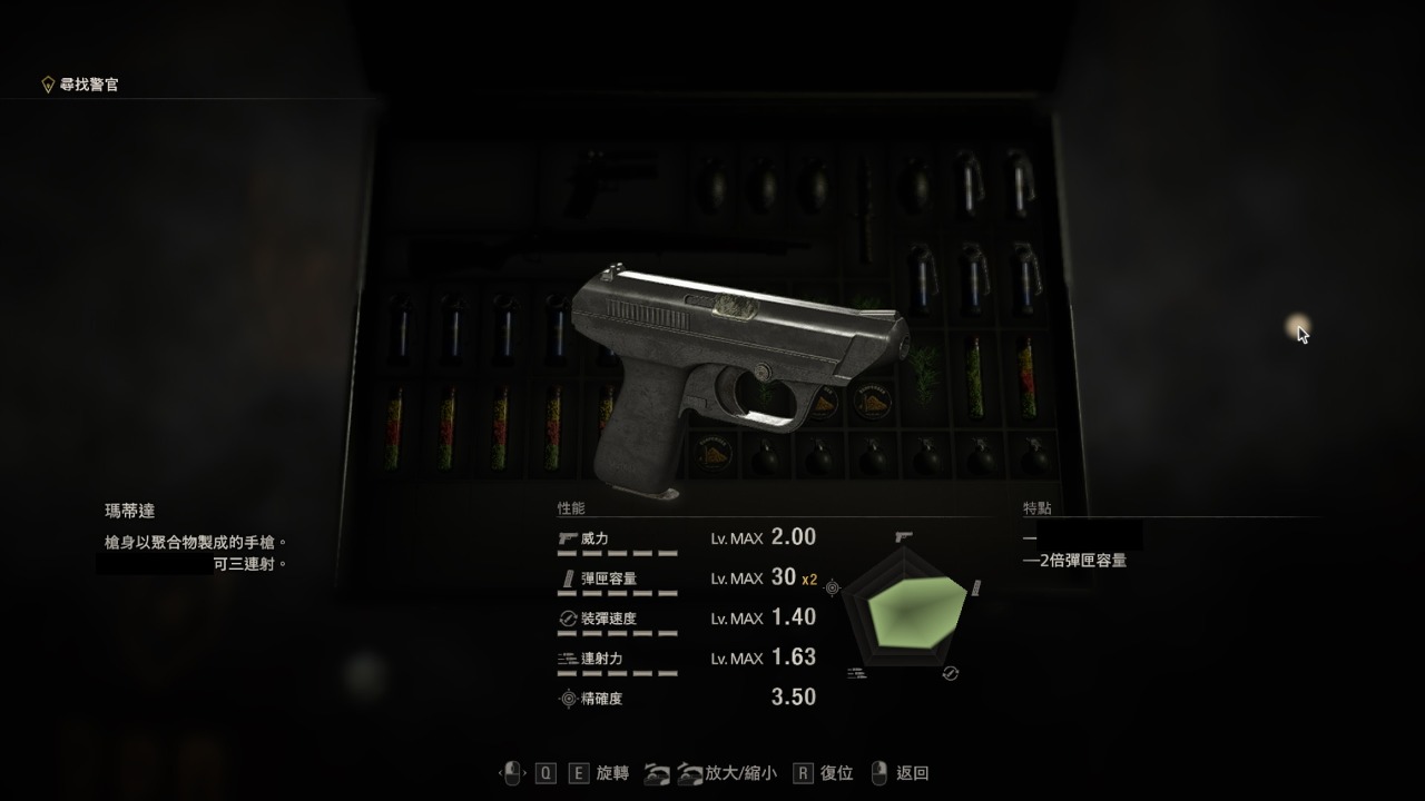 這把是Resident Evil 4裡解小刀跟手槍成就很好用的一把手槍,請問遊戲中裝上什麼東西後可以三連射? (A)瞄準鏡 (B)槍托 (C)彈匣 (D)雷射瞄準器 https://store.steampowered.com/app/2050650/Resident_Evil_4/