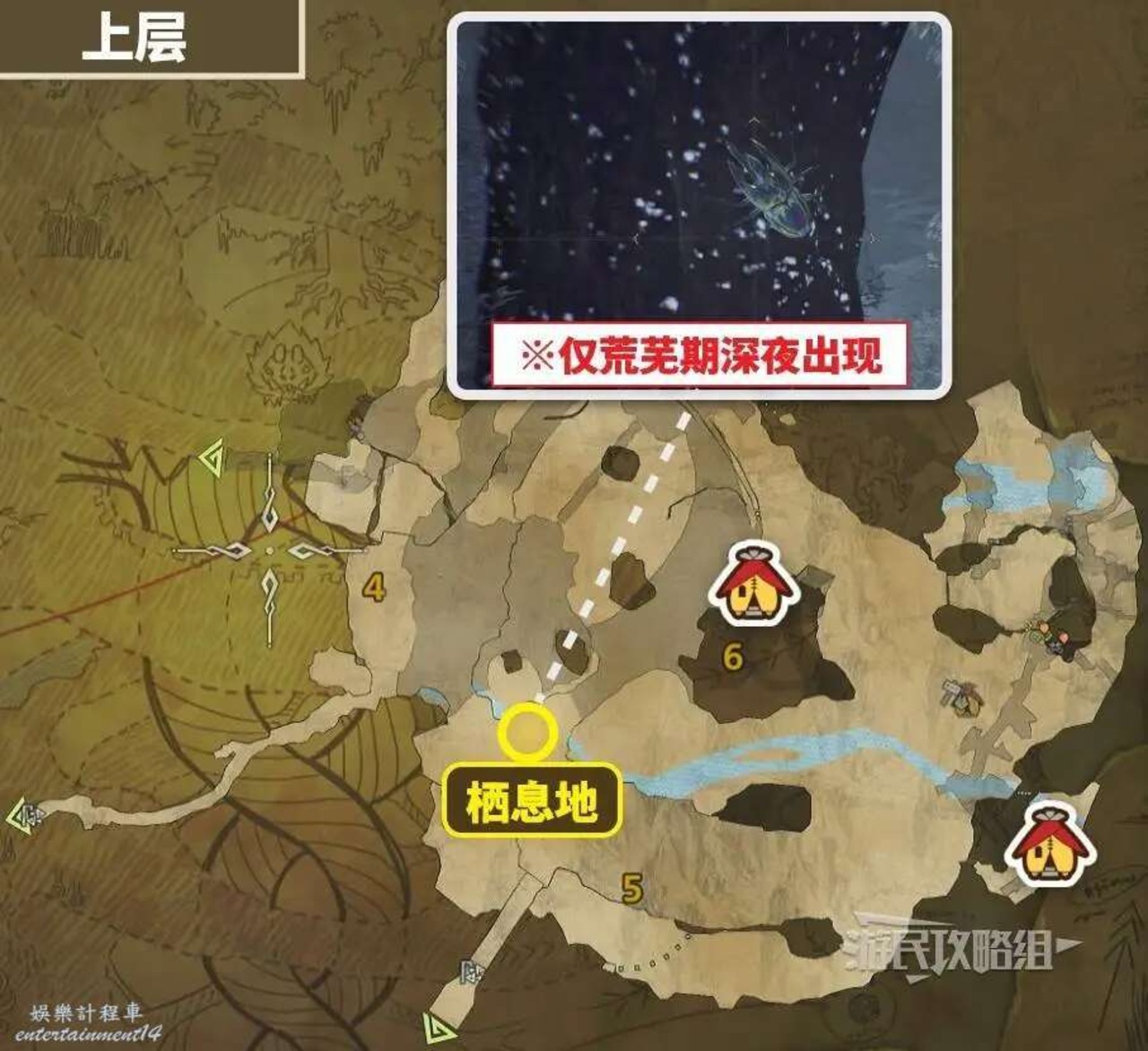 如果沒有出現的話,需要傳送到另外一張地圖(不能是同一張地圖的其他區域)再返回區域6的簡易營地,然後再去看看有沒有出現,重複上述步驟直到成功捕捉。