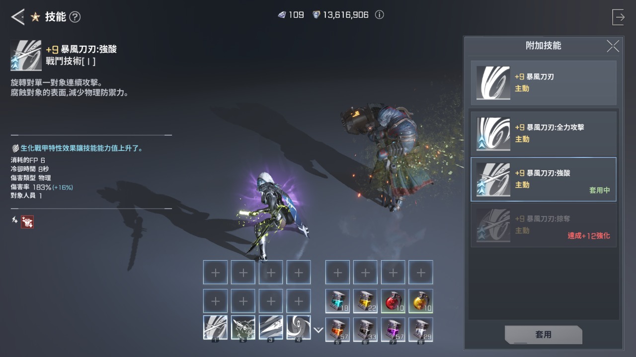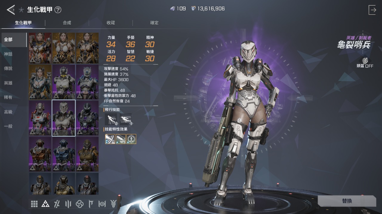 機甲方面,同品質也是有個位數的數值差距,以及獲得強化職業技能和額外飛行技能,14天會送1件隨機戰甲,如果能隨機到制裁者對於無微課玩家會比較理想一點。機甲攻擊有分原力(魔攻)和物攻,裝備屬性、稱號、塔力克(有階級設定,每階級分3階段)、戰鬥模組選擇和核心連接都能依照職業和個人需求調整所需屬性。預設可設定三個裝備,雖然是課長的玩具,畢竟無微課肯定是最高品的機甲為優先考量,平常也都會一直用,預設比較像是在團隊PVE和PVP時應急用,像主制裁者時,團隊需要補血或控制就會切成預設匠師短暫幫助補血和牽制,雖然可能屬性有衝突且有原力及物攻的不同,但暫用時幫忙團隊也是不錯,畢竟CD只有1分鐘且戰鬥中能切,切換還是很實用。技能強化的話,+4/+8/+12有額外解鎖能力,可以選擇一個套用,通常可以考量強化到所需效果解鎖等級,不過+9再往上強化失敗會倒扣,推先考量到+8的效果就好,+12造價太高了。
