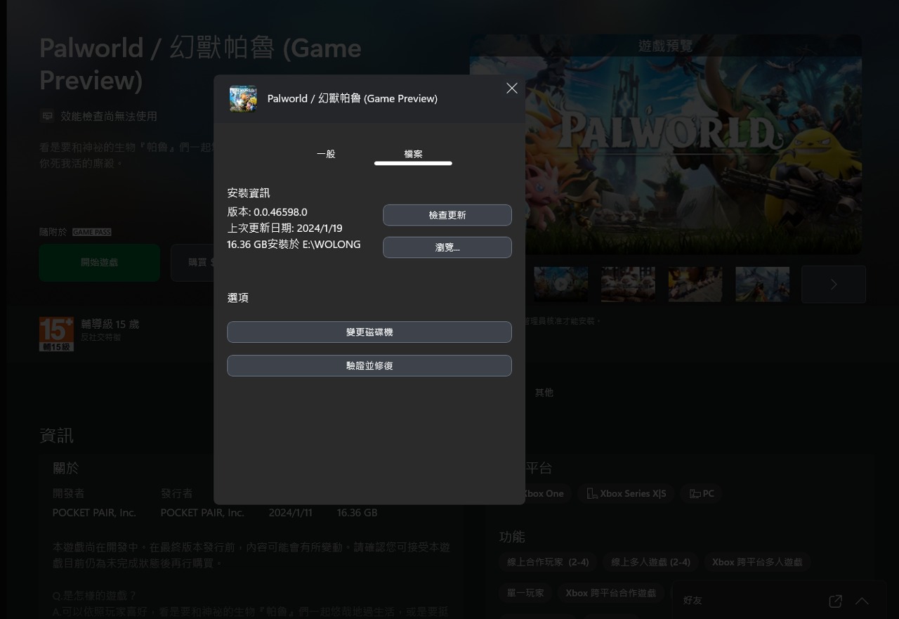 訂閱GAME PASS玩幻獸帕魯不知道哪邊可以更新,版本一直卡到V0.1.0.0