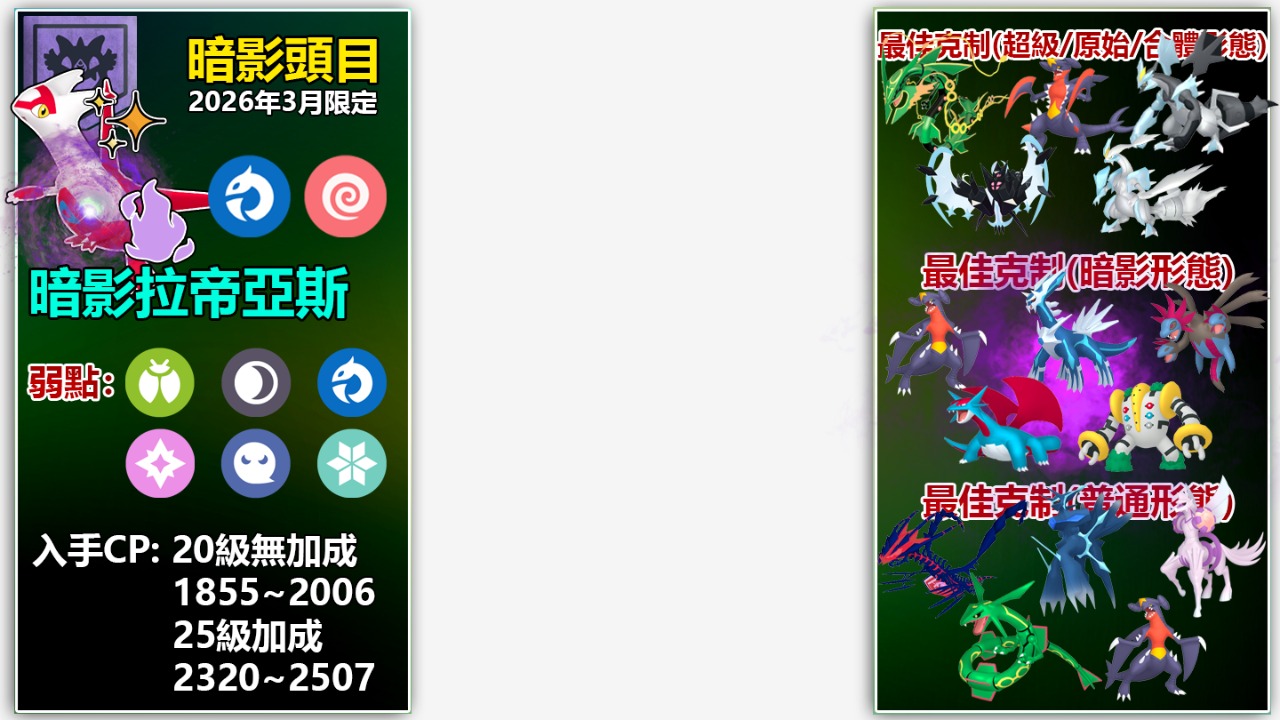 暗影形態推薦巨金怪、雷吉奇卡斯和普通帝牙盧卡,