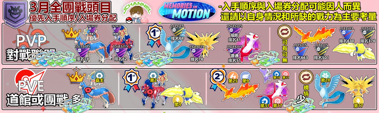 若想更全面去了解所有傳說和超級團戰頭目的優先入手順序,甚至是團戰入場券分配詳情等,