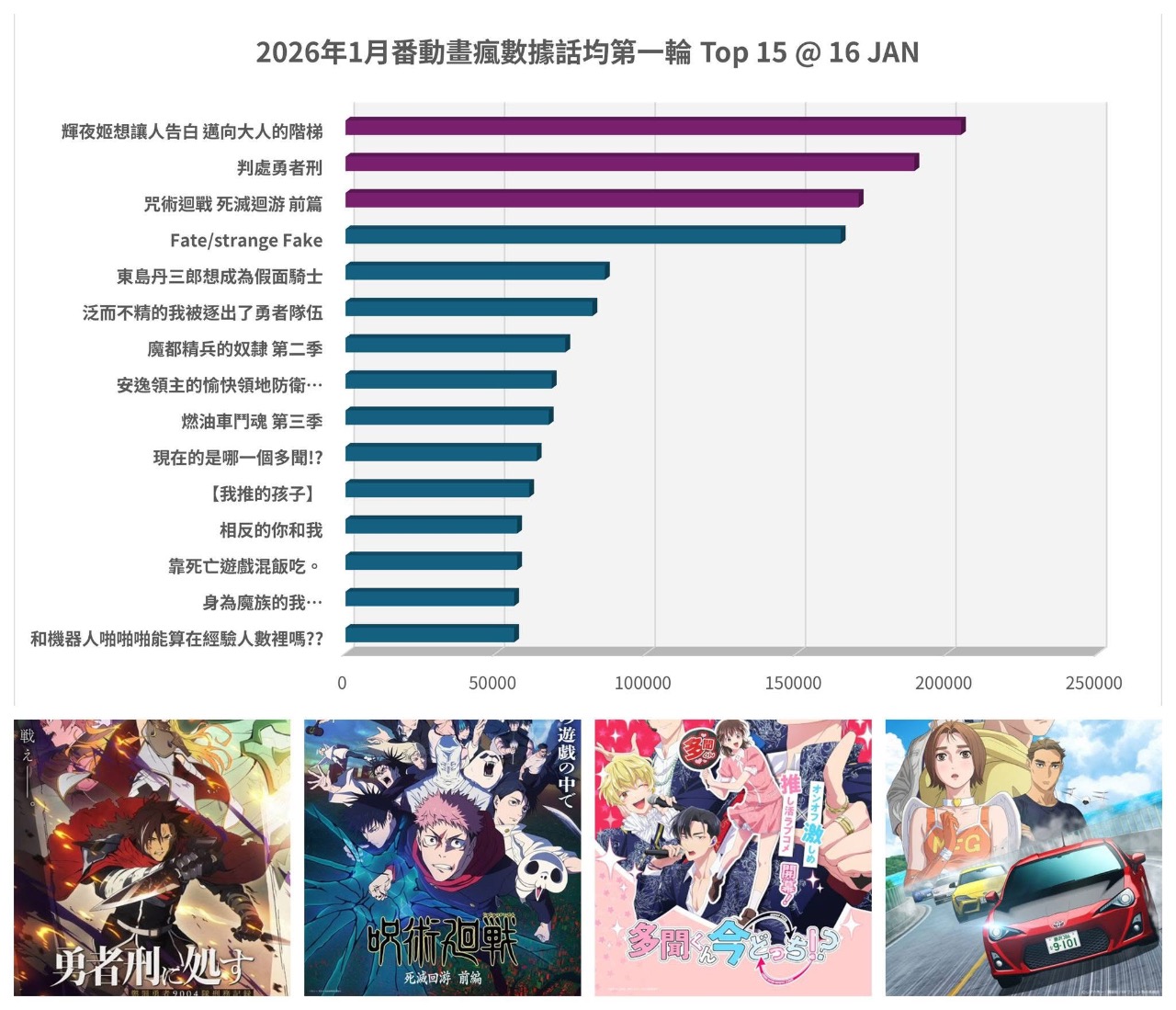 一月新番裡面有兩部我追的動畫都有上榜,沒想到被判勇者刑的排名這麼高,居然還贏咒數迴戰(這一季的咒數迴戰品質超高的,來造來造~),我自己覺得這個題材真的很新奇,另外女神意外的可愛,跟主角之間互動超有趣,劇情也很熱血,戰鬥畫面也很流暢過癮,難怪能上榜。另外一個就是魔都精兵的奴隸第二季了,這個我想各位紳士應該都已經感受到各位組長的魅力了。我還對另外兩部很蠻有興趣的,一部是現在是哪一個多聞和和機器人啪啪啪能算在經驗人數裡面嗎? 不曉得大家追的一月新番有沒有上榜?