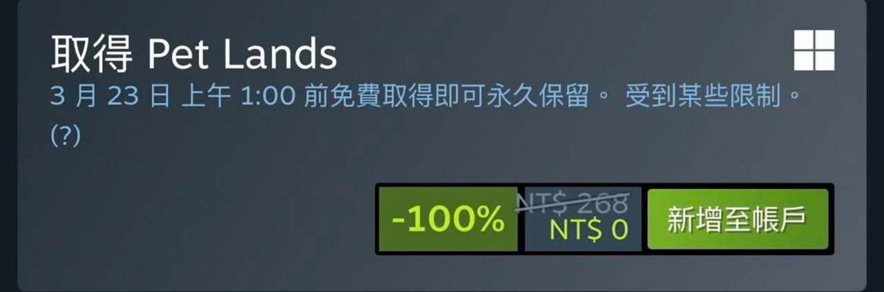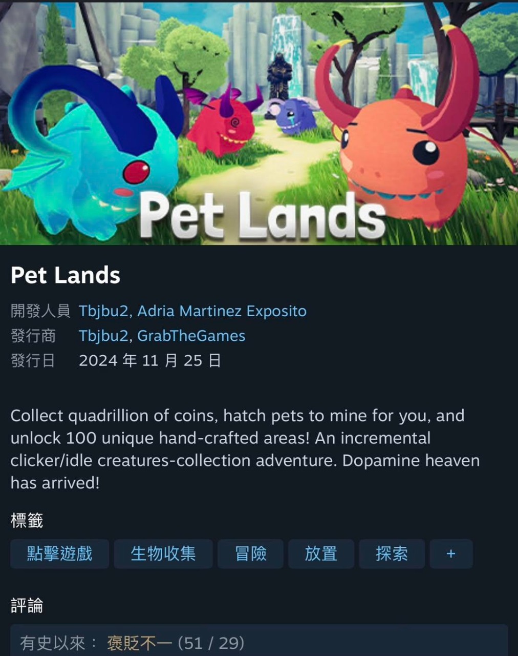 【Steam限免】3 月 23 日 上午 1:00 前都能領Pet Lands