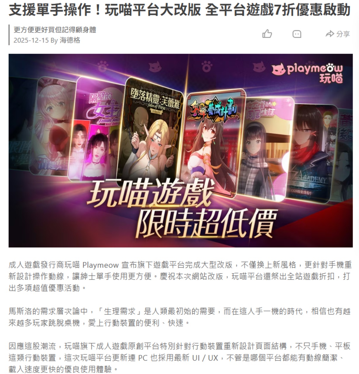 特別任務來了 留言 可領金幣 30元 https://www.4gamers.com.tw/news/detail/75762/playmeow-game-platform-has-undergone-major-overhaul-with-discount