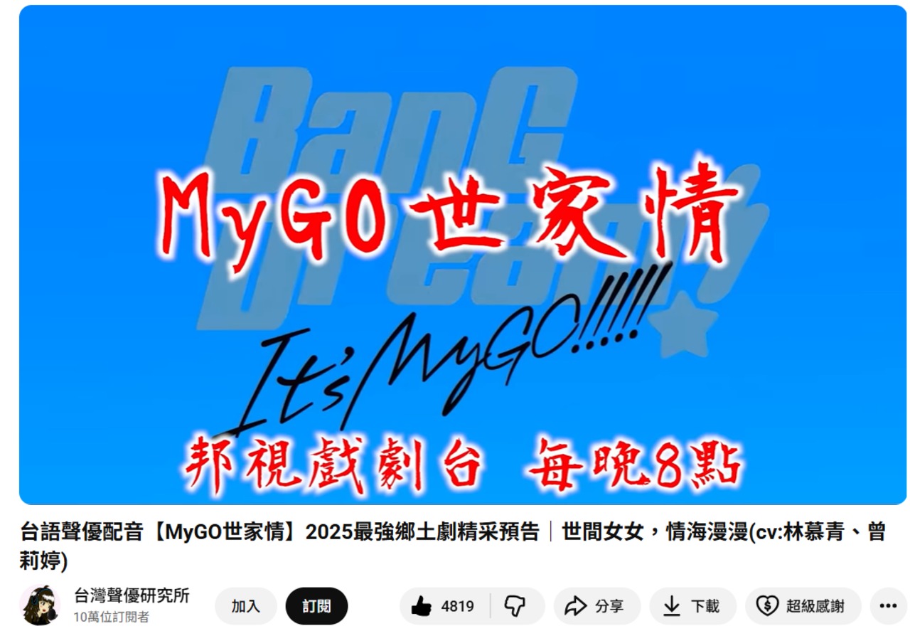 [轉貼]台灣聲優研究所推出四集台配Mygo 世家情四集
