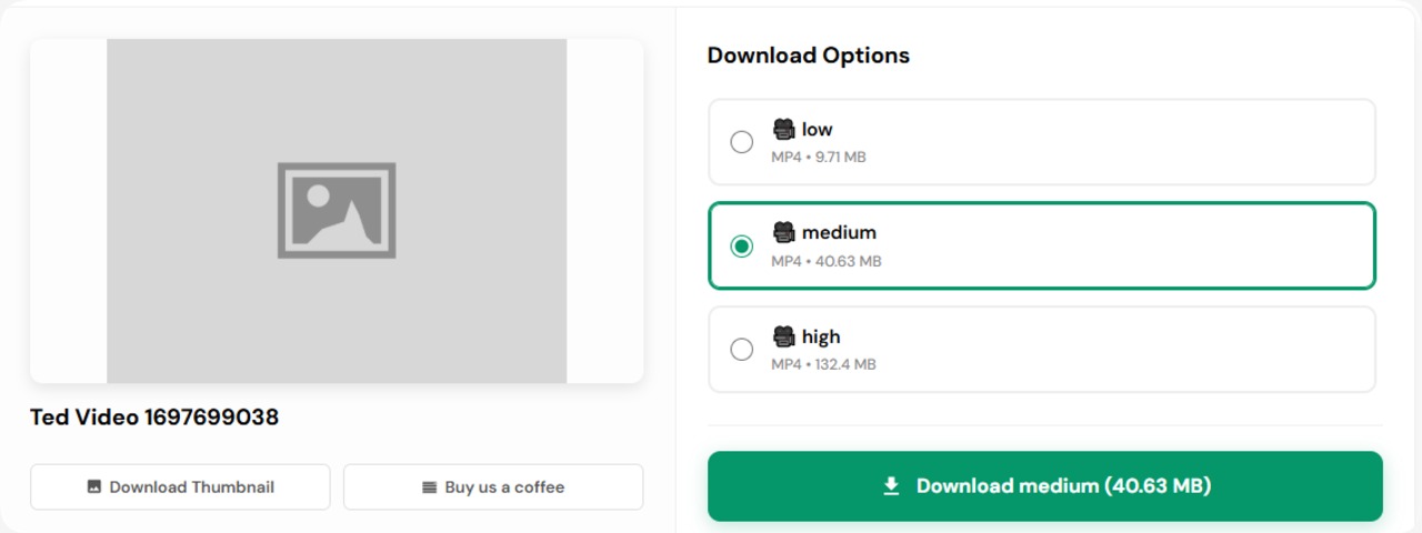 這是一款專門支援 TED 演講影片下載的線上工具,操作非常直覺。這個工具和其他線上下載工具一樣,也有廣告,注意不要誤點擊。