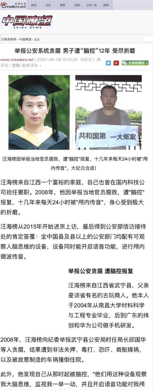 汪海榜遭警務系統電子騷擾 Mind contral