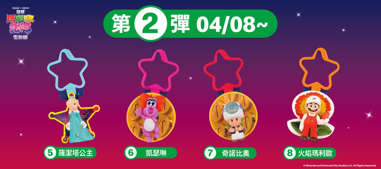 - 第二波 (4/8 起):羅潔塔公主、凱瑟琳、奇諾比奧、火焰瑪利歐。