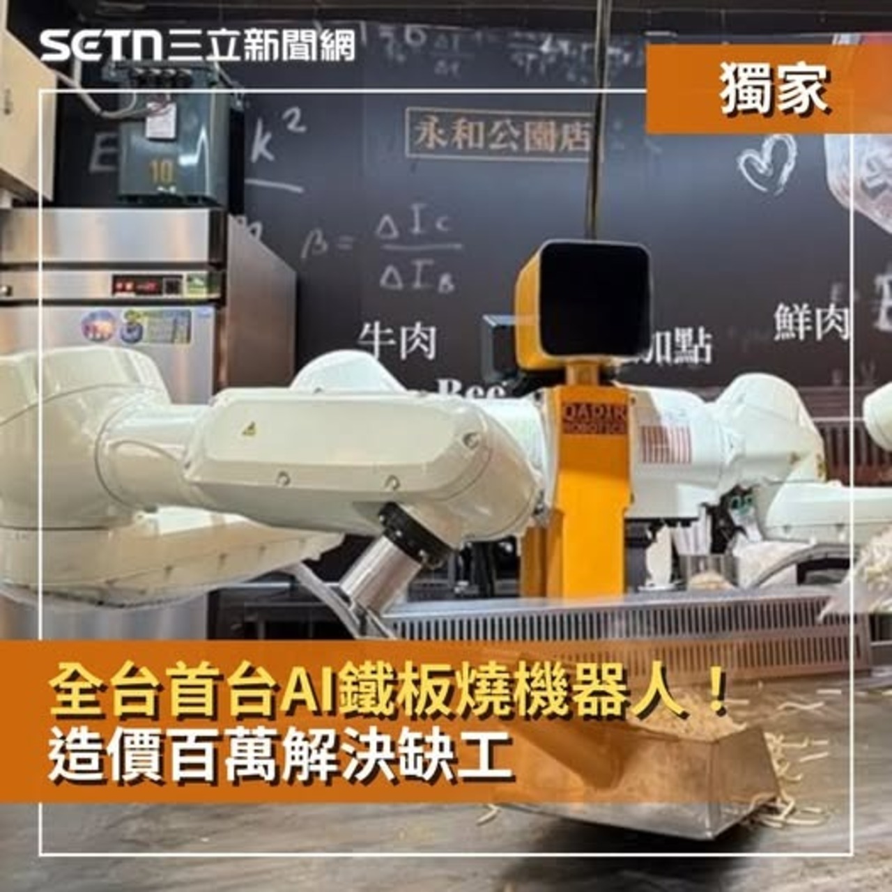 AI機器人不再只能表演作秀!新北永和一間鐵板燒店引進全台第一台「AI鐵板燒炒菜機器人」,可透過AI鏡頭確認食材熟度,從炒料、盛盤到清洗鐵板一機搞定,2分鐘就能上菜,楊老闆表示機器人造價7位數,已申請專利,可解決人力不足問題。