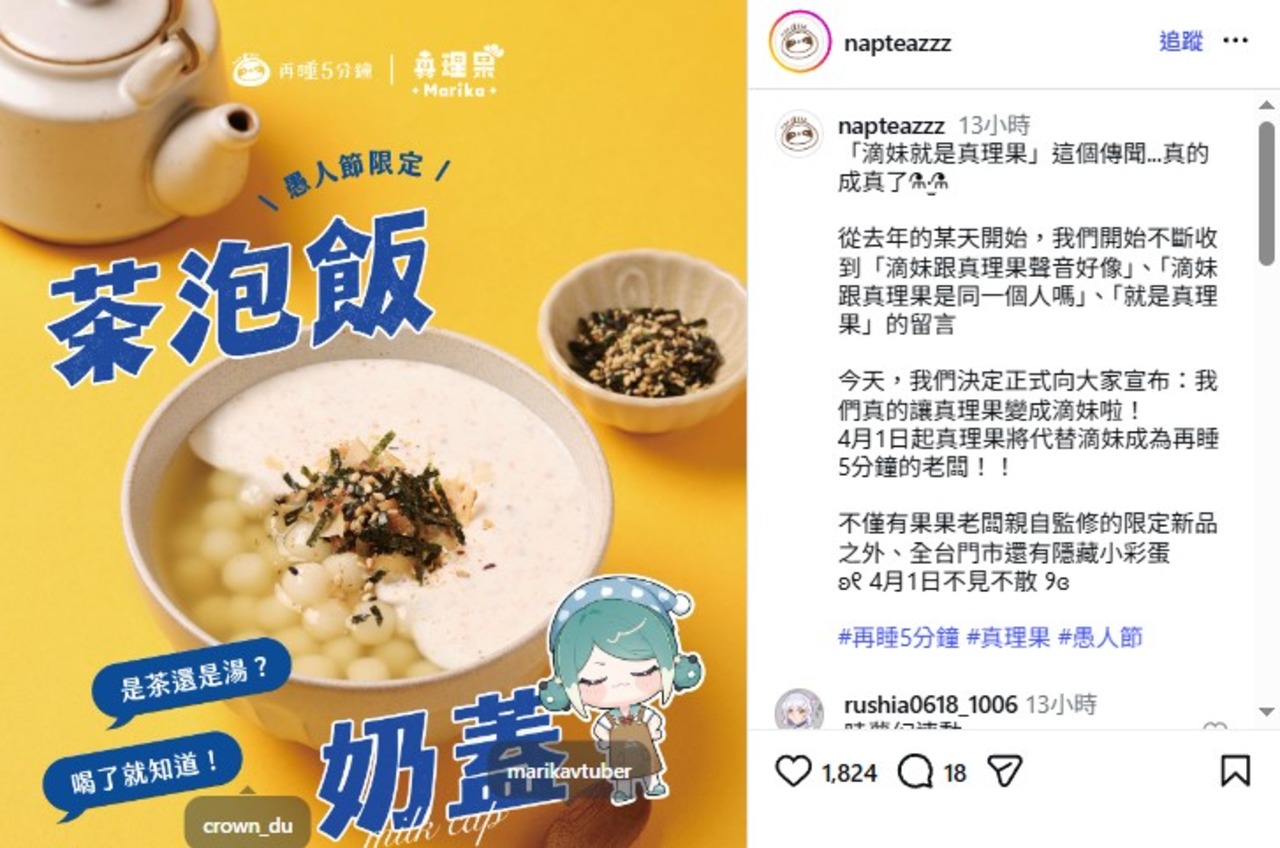 兩人將在「再睡5分鐘」手搖飲推出聯名飲品(真理果化身一日老闆娘)。