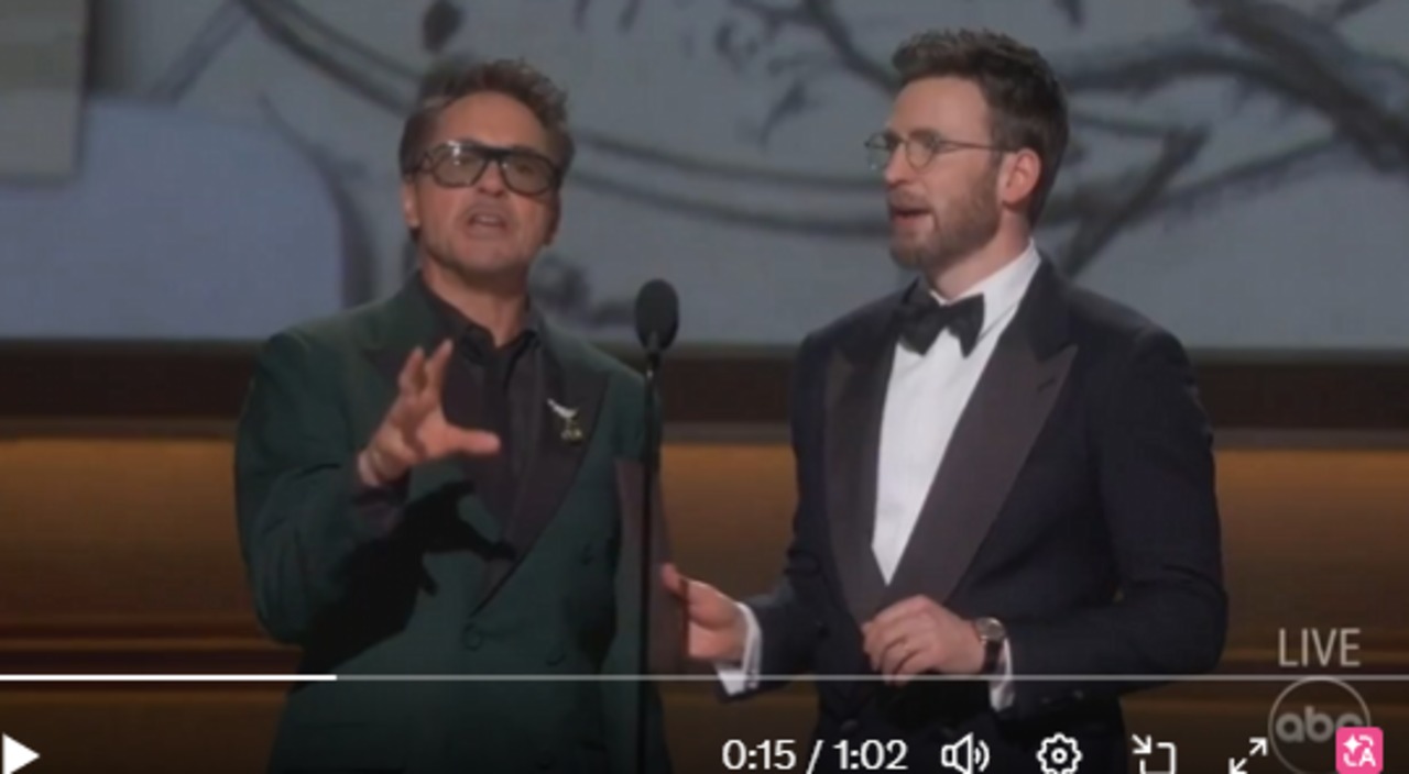 今天奧斯卡典禮光榮時刻,美國隊長跟鋼鐵人的演員又齊聚在一起了!