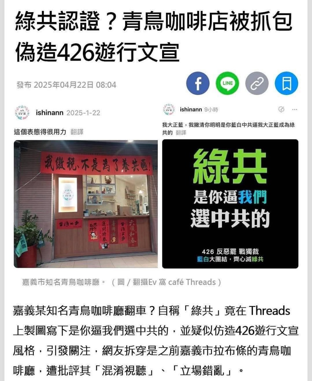這位青鳥廠商模仿426文宣要打造去426都是支持中共