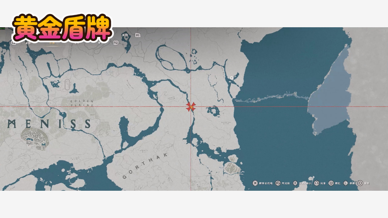 再來我們要去拿黃金盾牌,地點在大地圖右邊,DryWind Valley右下角的瀑布,進去之後系統會告訴你這裡是水之奉獻洞穴,打開寶箱就可以拿到盾牌了,面板是防禦力5,攻擊速度等級2,防禦耐力消耗減少6%,焠火4,這面盾牌搭別的套裝也會不錯看。
