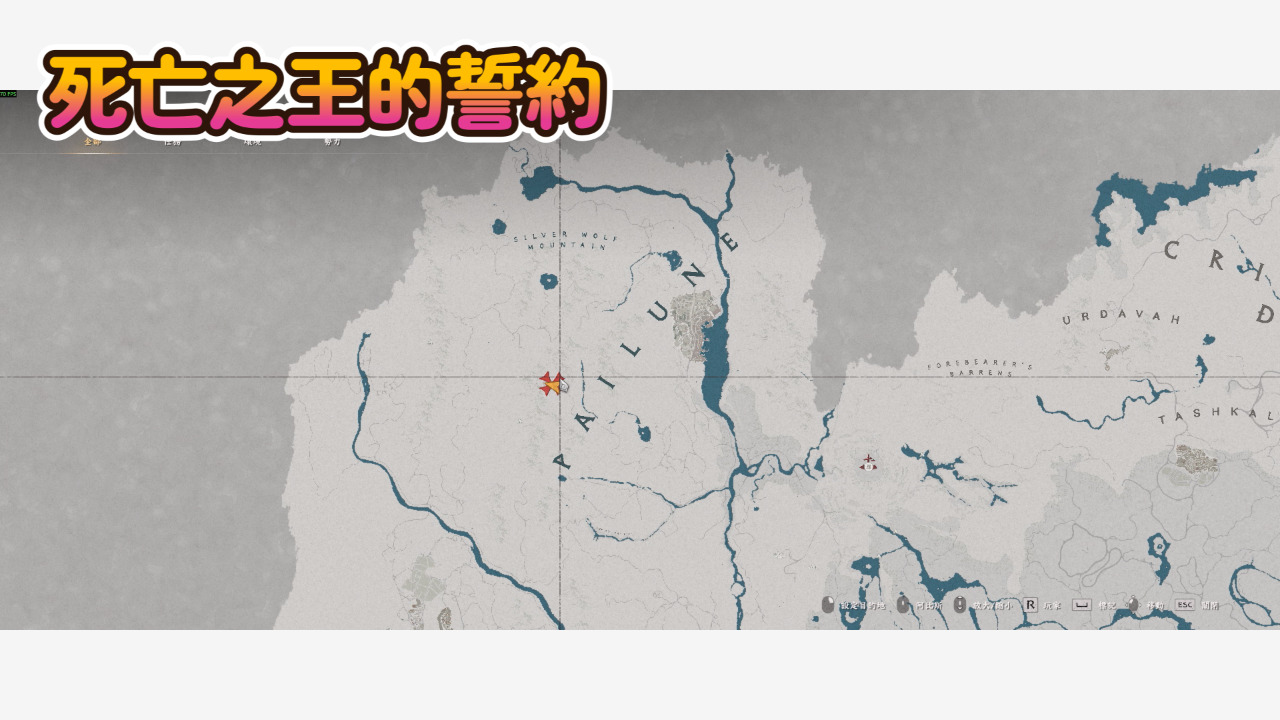 第一個我們先去拿死亡之王的誓約,位置在PAILUNE的PAI三字左上方,那裡可以找到寒霜城址,寒霜城址的北邊一點小積水的左下,樓梯走下去,