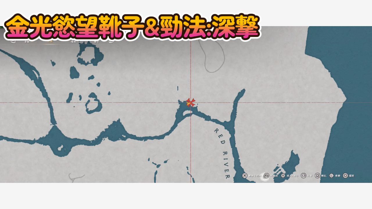 拿到之後我們去這個位置,一樣在大地圖右邊,Red River左上角,這邊有一個石頭間隙可以走進來,走到底往左看會發現一道礦脈擋住,我們用勁法:深擊就可以打破礦脈進去拿寶箱,到手的金光慾望靴子面板是攻擊力19,防禦力7,移動速度等級1,焠火4,耐力自然恢復+2%,移動速度+1。