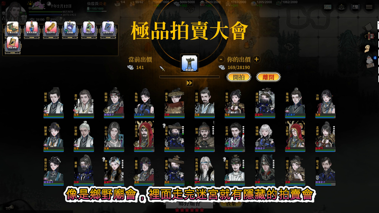 高階的拍賣活動是一定要去的,可以碰碰運氣,然後中原鬼市把它想成黑市就對了,有賣武學,但賣得比較貴,這次更新也提高了每個商店貨物的品質,所以也可以看看。