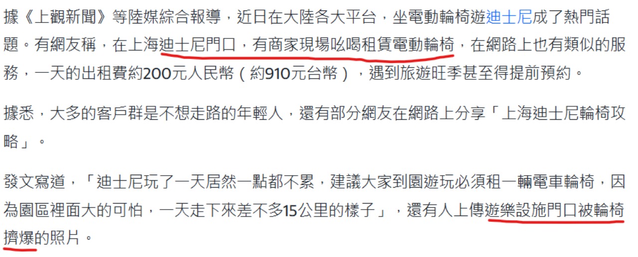 年輕人懶走路...上海迪士尼「電動輪椅」氾濫 慘變碰碰車場