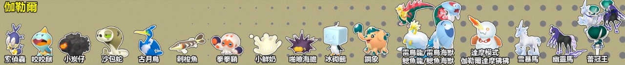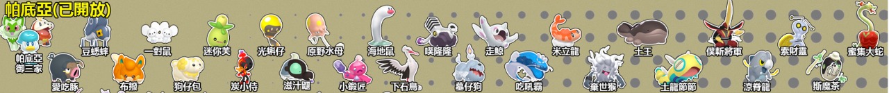 已開放的一眾寶可夢如圖所示,未列出來的均等待開放中~