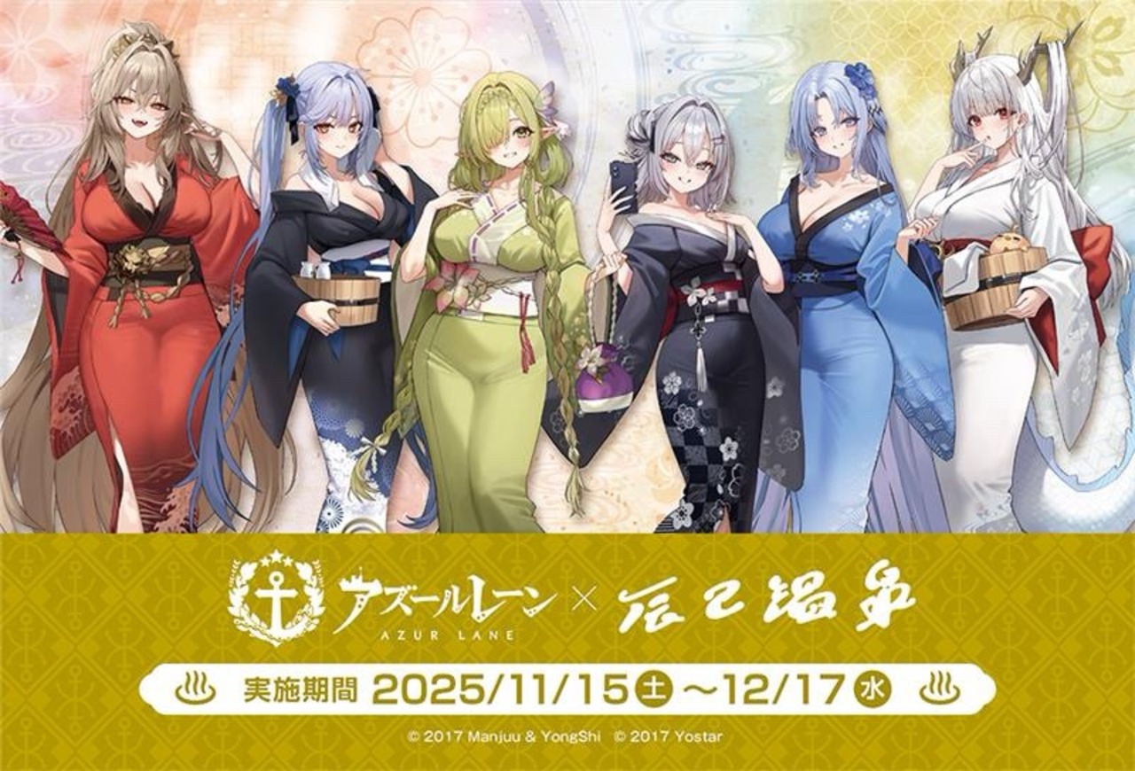 【碧藍航線 × 辰巳温泉合作♨】 年度人氣合作活動,今年再度登場!! 使用全新繪製插圖的裝飾、合作周邊商品、附贈商品的入浴券等,亮點滿滿! 活動期間除了能享受特製合作浴池外, 今年還新增了以合作主題裝飾的個人包廂式桑拿「隱居桑拿」可供體驗! 舉辦期間:11月15日(星期六)~12月17日(星期三)