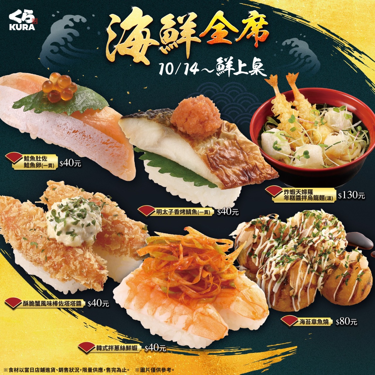 集結章魚燒、炸蝦、鮭魚、鯖魚等6款海味新品,一次大口滿足!