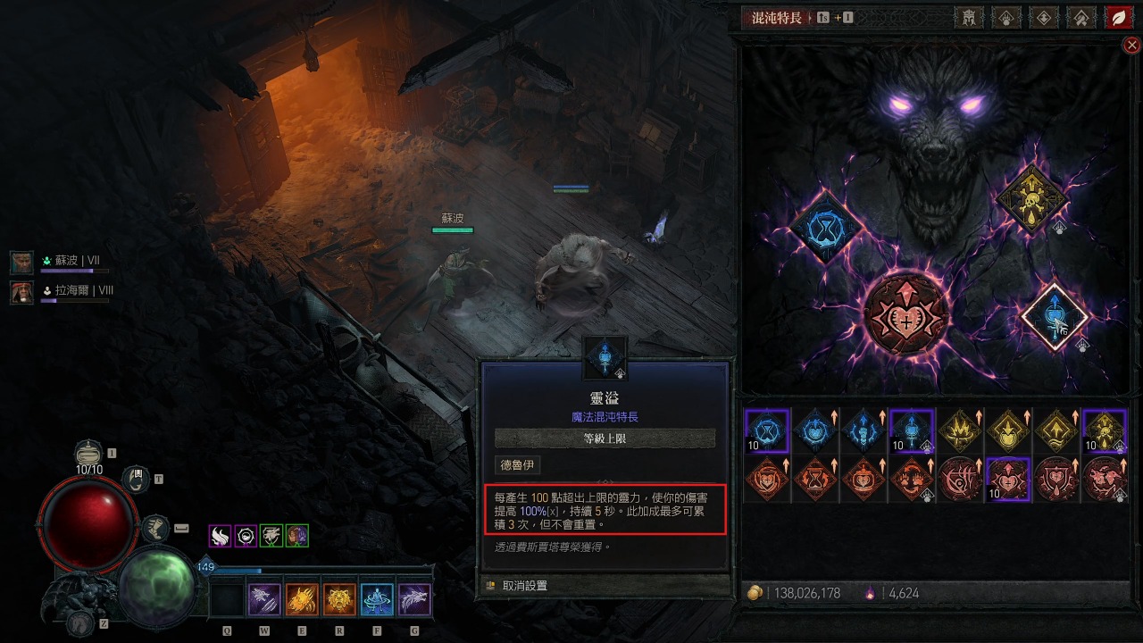 其中藍色的能力「靈溢」,回魔超過100會給你1個more傷