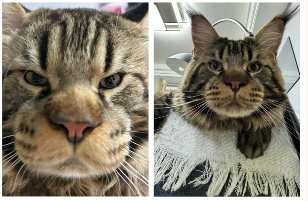 緬因貓被蜜蜂蜇,進化成老虎😂