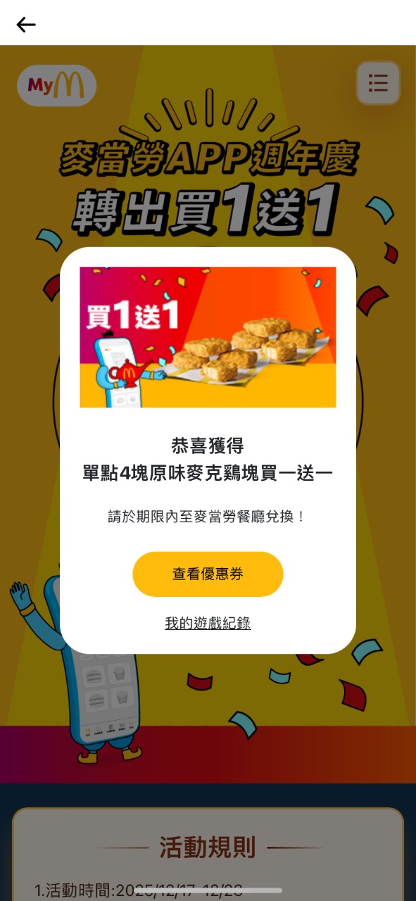 好玩又有優惠可以拿很不錯呦,現在就到麥當勞app去玩吧