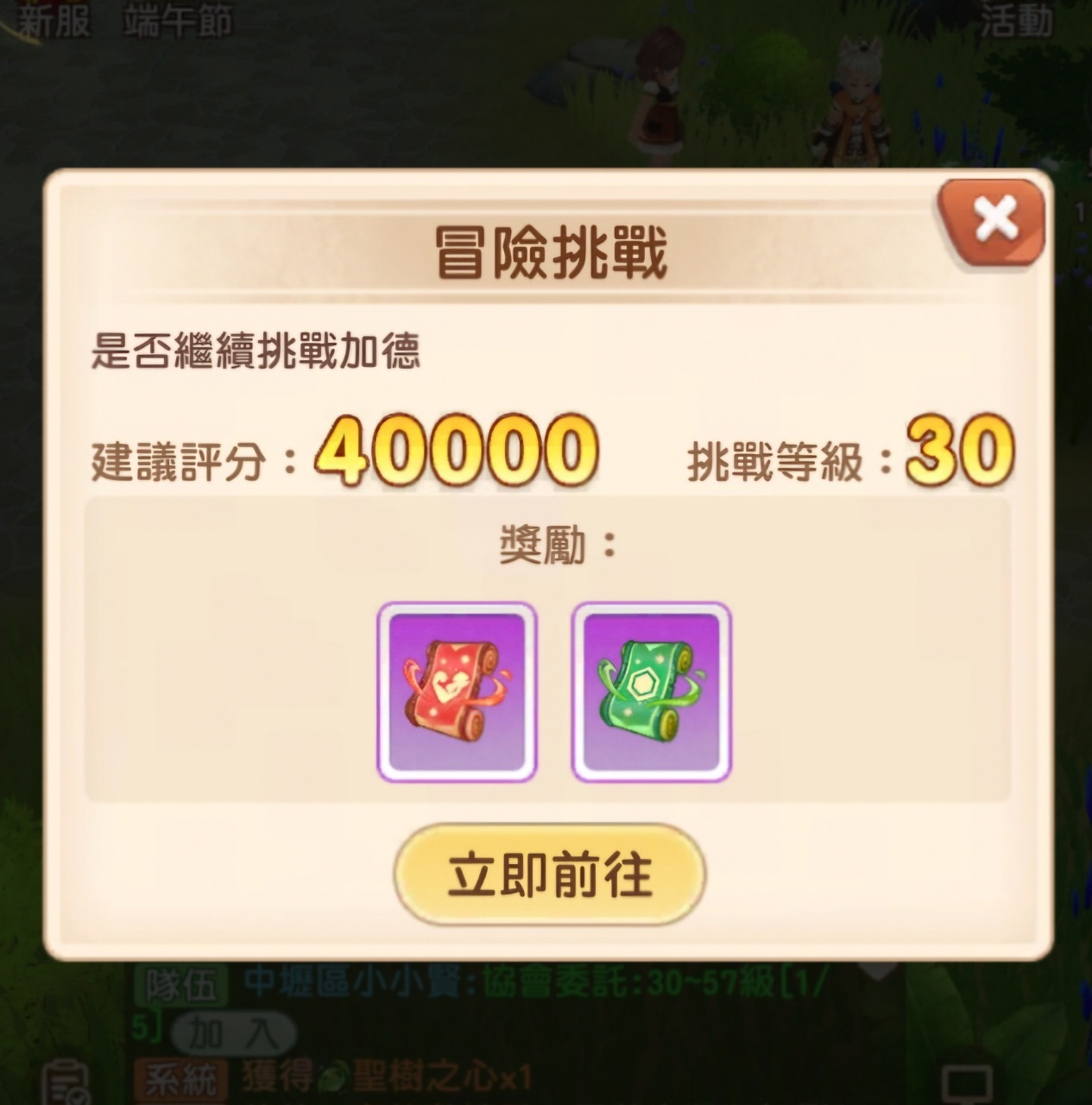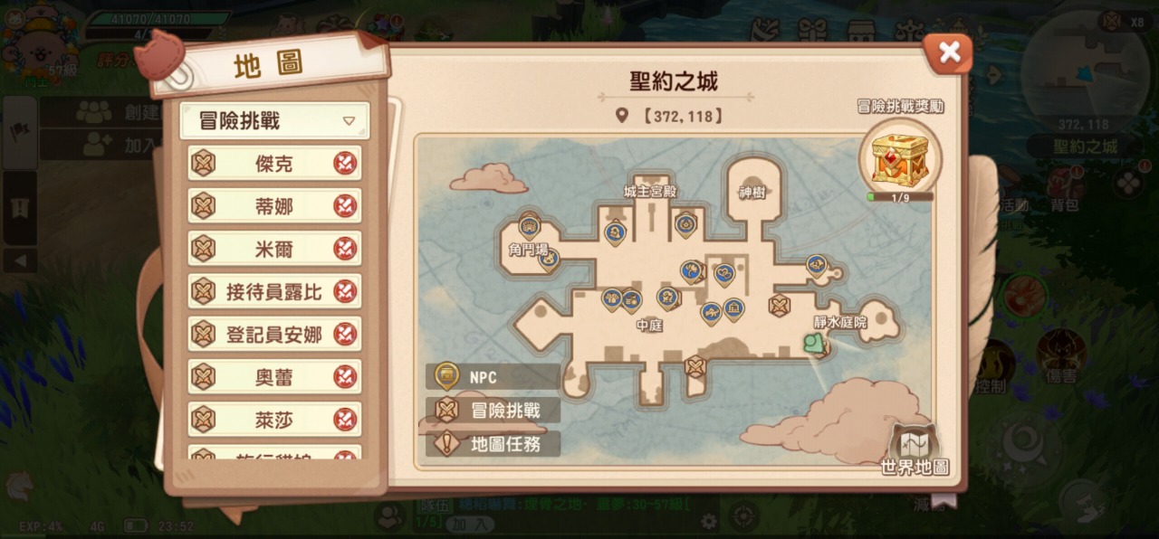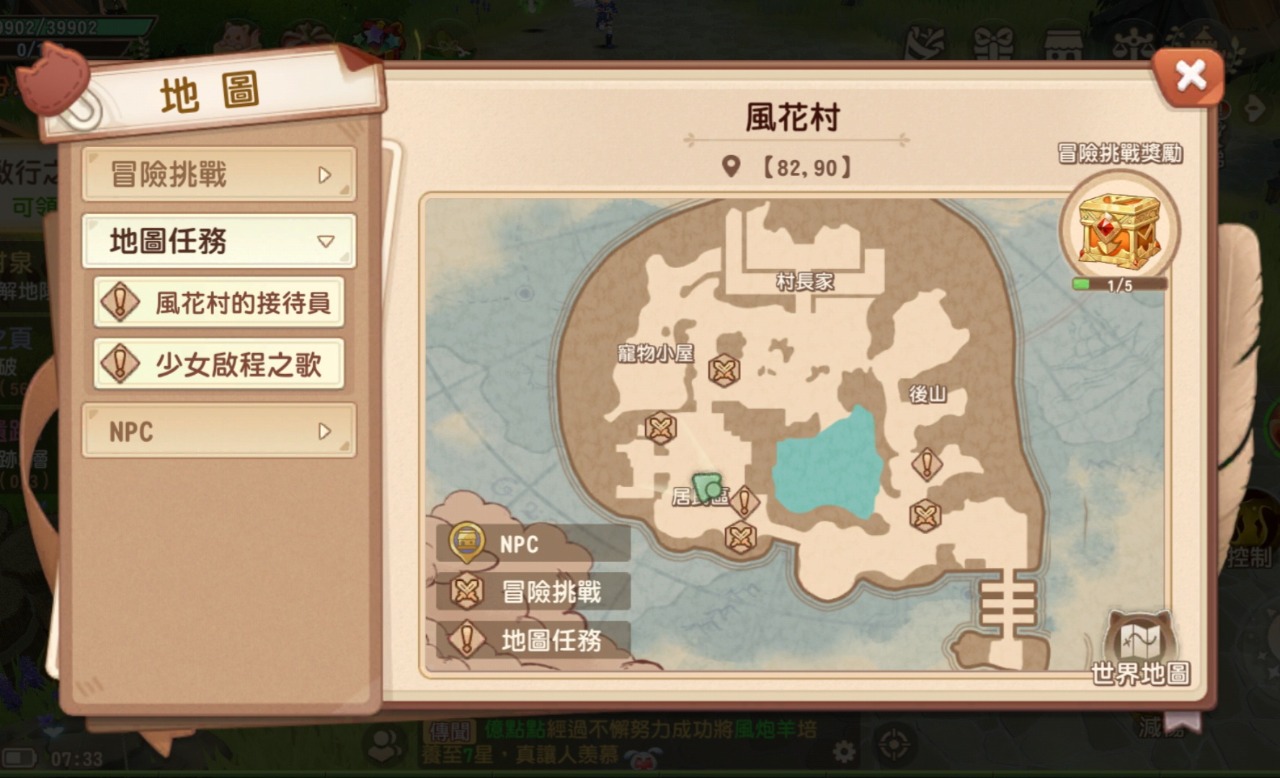 不知道大家有沒有注意過每張世界地圖上都有像寶O夢一樣會拿出寵物決鬥的NPC,打贏都有不錯的獎勵 除此之外還有地圖任務(幫NPC跑腿),只要完成這些任務就能開啟冒險挑戰寶箱,獎勵是5個聖樹之心,有空記得解一解不要錯過了