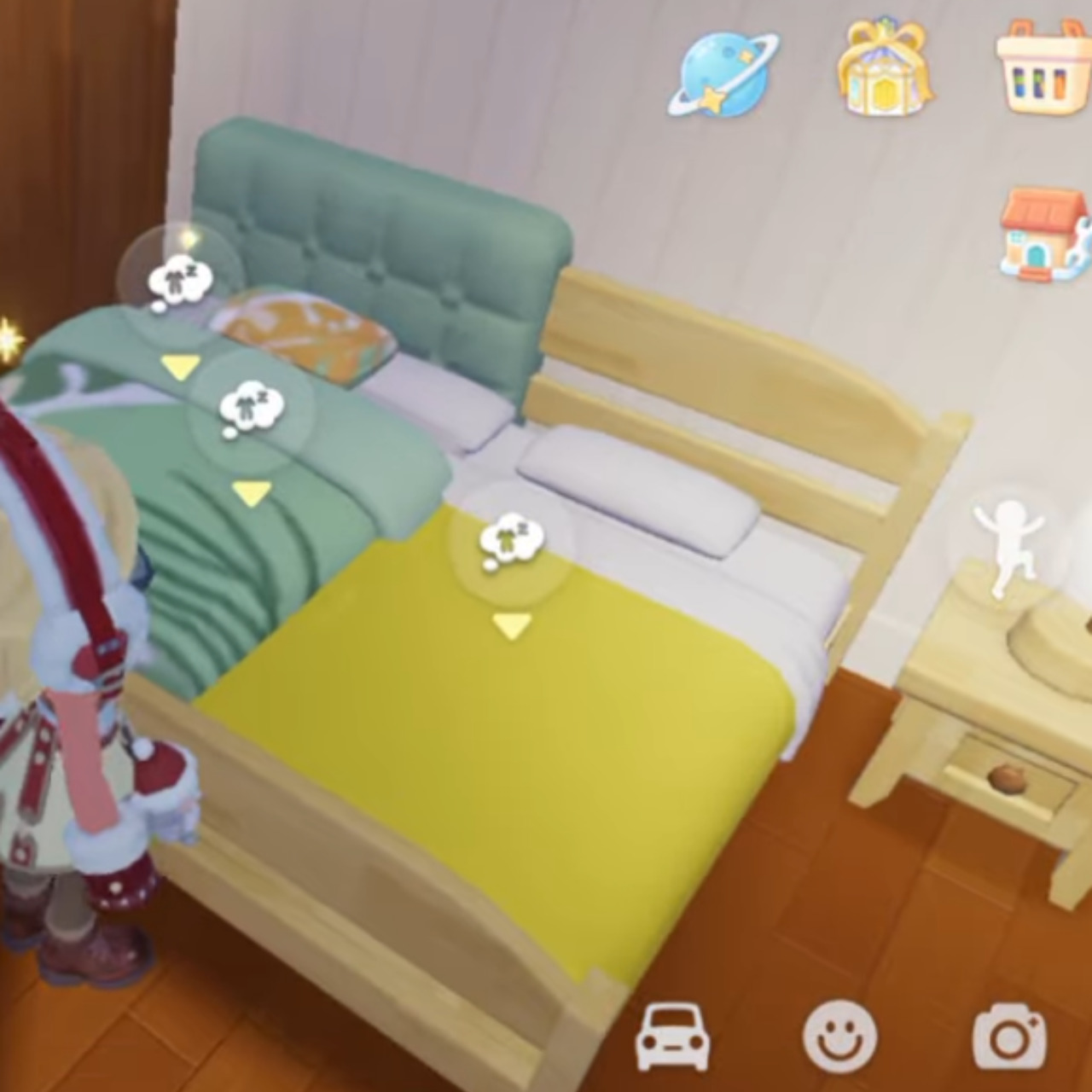 這時候按左上角”完成”退出建造模式,就可以發現卡在奇怪位置的床回到原本正常的位置了,