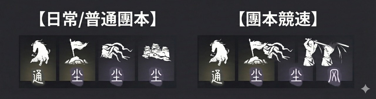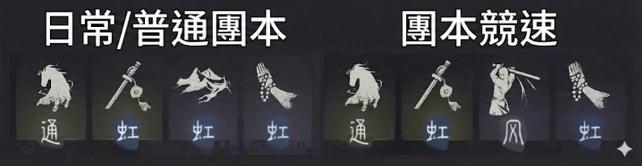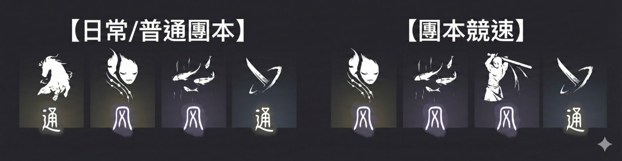 大部分的「競速流」核心都在於把防禦或功能型心法換成4重以上的「斷石之構」;而日常探索如果想要舒服一點,帶「易水歌」基本上都不會錯!希望這份整理對大家有幫助。