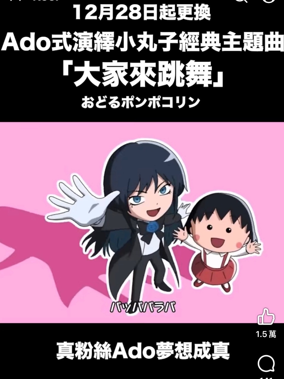 恭喜Ado 唱到櫻桃小丸子的歌啦