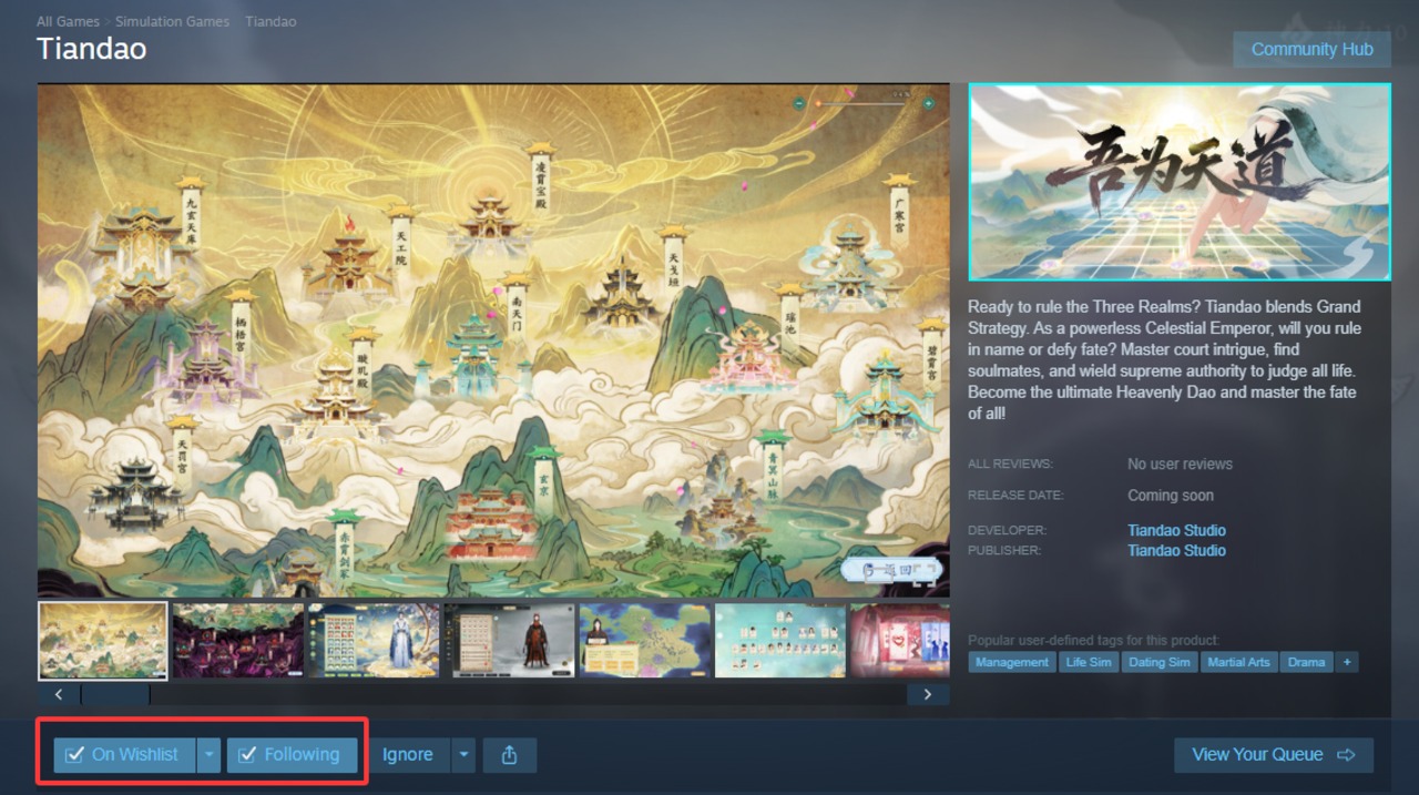 Steam鏈接:https://store.steampowered.com/app/4258280/Tiandao/